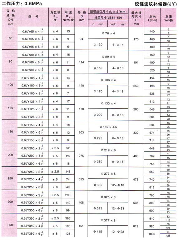 鉸鏈波紋補償器(JY)參數1