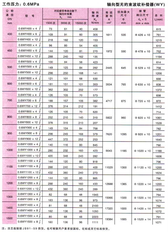 無約束波紋補償器(WY)參數2