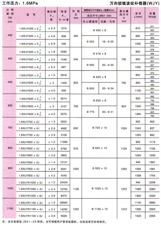 萬(wàn)向鉸鏈波紋補(bǔ)償器(WJY)參數(shù)7