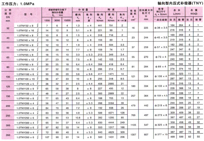 軸向型內(nèi)壓式波紋補(bǔ)償器(TNY)參數(shù)9