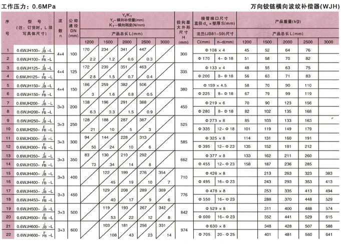 萬向鉸鏈橫向波紋補償器(WJH)產(chǎn)品參數(shù)1