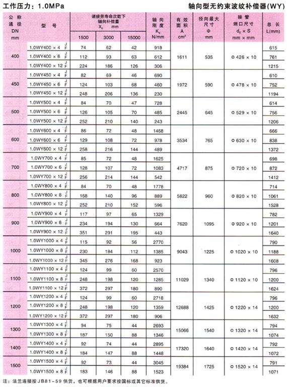 無約束波紋補(bǔ)償器(WY)參數(shù)4