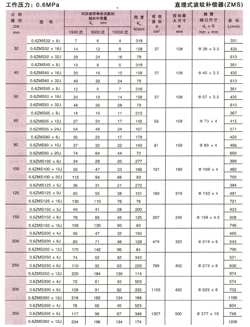 直埋式波紋補(bǔ)償器(ZMS型)參數(shù)1
