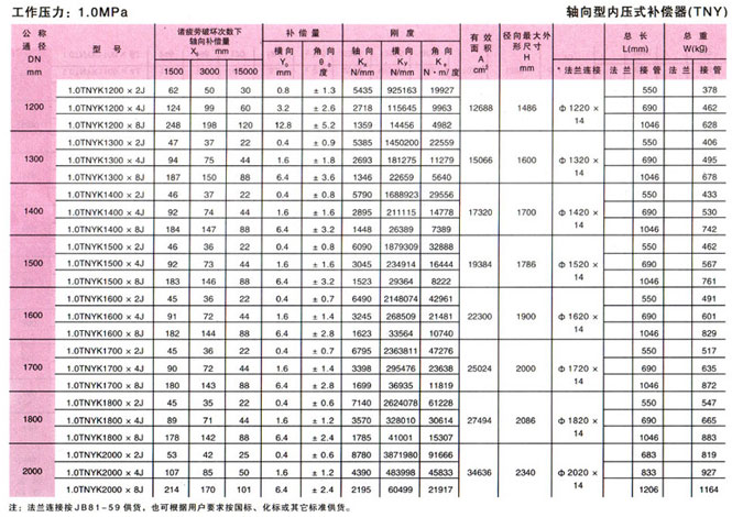 軸向型內壓式波紋補償器(TNY)參數11